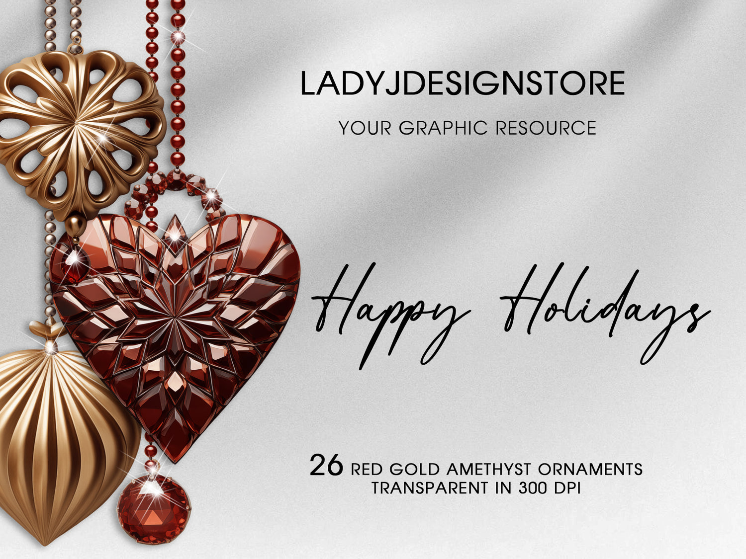Add a touch of luxury to your holiday designs with this stunning set of Gold & Red Christmas Ornaments Clip Art collection