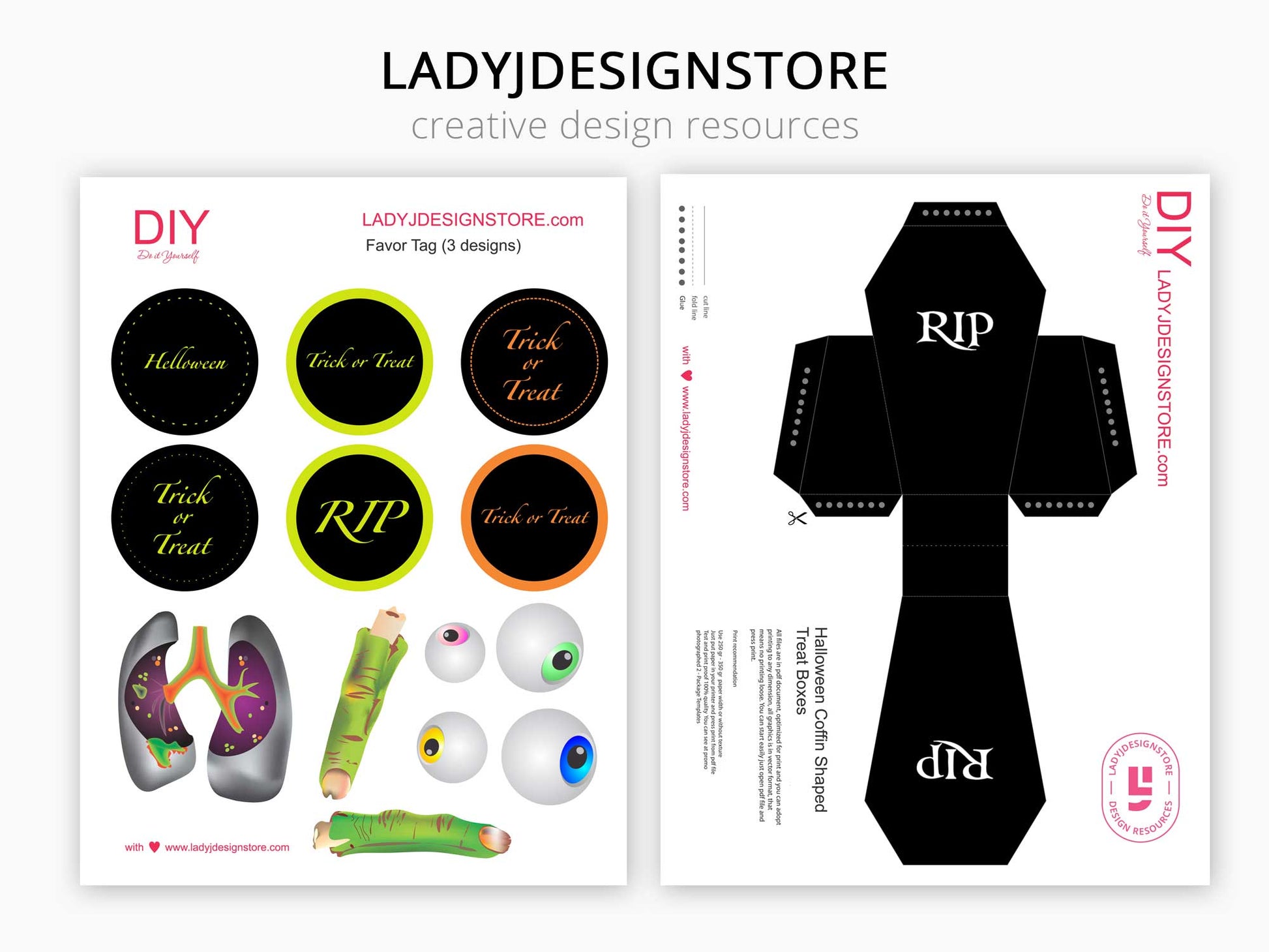 Bring spooky fun to your Halloween celebration with this Coffin-Shaped Treat Box DIY Template! This printable Halloween favor box features zombie fingers, eyes, and lungs clip art for a creepy-cute design. It’s super easy to assemble—just print, cut, and glue. Perfect for holding candy, chocolates, or small gifts. Print as many as you like and enjoy endless Halloween fun!